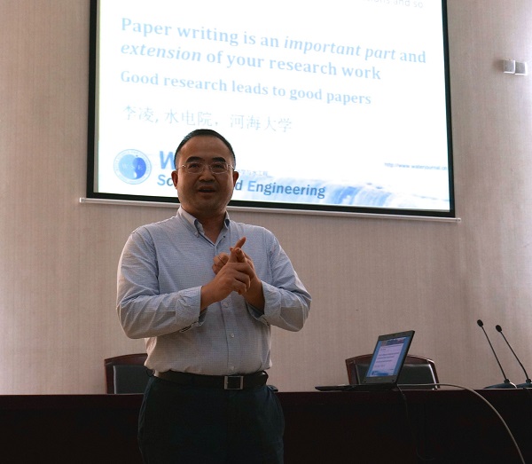 On April 11, 2014, WSE's Editor Prof. Ling LI gave a lecture on SCI article writing at Hohai University. The lecture focused on scientific writing. Prof. Ling LI summarized paper writing as an important part and extension of one's research work. The lecture was warmly welcomed by the students at Hohai University.